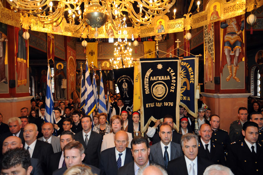 Στον κατάμεστο από πλήθος πιστών Μητροπολιτικό Ναό παρέστησαν ο Βουλευτής της Ν.Δ. κ. Σάββας Αναστασιάδης, η Βουλευτής των Ανεξάρτητων Ελλήνων κα. Σταυρούλα Ξουλίδου, ο Δήμαρχος Λαγκαδά κ. Ιωάννης Αναστασιάδης, ο Αντιπεριφεριάρχης Κεντρικής Μακεδονίας κ. Απόστολος Τζιτζικώστας, o Πρόεδρος Εκδοτών Βορείου Ελλάδος κ. Μπάμπης Μπαρμπουνάκης, εκπρόσωποι των στρατιωτικών αρχών και των σωμάτων ασφαλείας, καθώς και αντιπροσωπίες της πρωτοβάθμιας και δευτεροβάθμιας εκπαίδευσης του Λαγκαδά, οι οποίοι με τις γαλανόλευκες σημαίες και τα λάβαρα ανά χείρας τίμησαν όλους τους προγόνους που θυσιάστηκαν για την πατρίδα μας, καθώς και πολιτιστικοί σύλλογοι με τις παραδοσιακές τους φορεσιές.