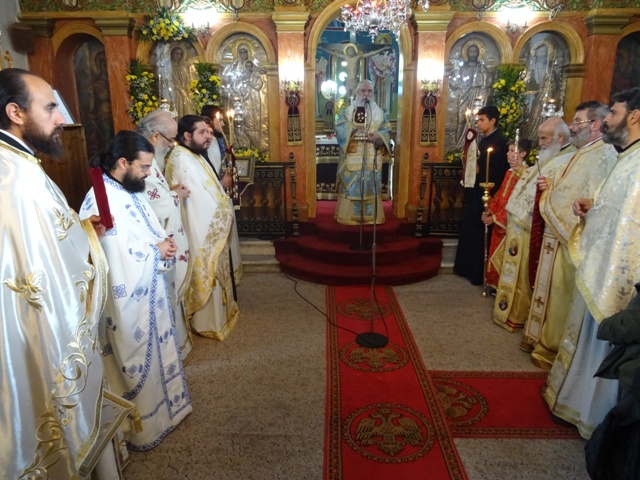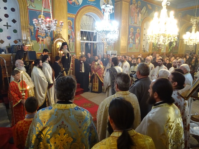 Την κυριώνυμη ημέρα της εορτής τελέσθηκε ο όρθρος, η αρτοκλασία και στη συνέχεια η Πανηγυρική Αρχιερατική Θεία Λειτουργία προεξάρχοντος του σεπτού Ποιμενάρχη μας κ. Ευσταθίου. Προς το πολυπληθές εκκλησίασμα μίλησε ο Πανοσ. Αρχιμανδρίτης και ιεροκήρυκας της Ιεράς Μητροπόλεώς μας π. Ευστάθιος Πορφύρης, ο οποίος, μεταξύ άλλων, επισήμανε τους τρόπους με τους οποίους πρέπει να τιμούμε τους Αγίους της Εκκλησίας μας, καθώς και την ανάγκη να παραδειγματιζόμαστε από τη ζωή και τα διδάγματά τους.