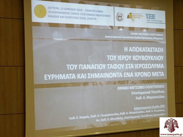 στη Σπάρτη, διάλεξη με θέμα: «Το Ιερό Κουβούκλιο του Παναγίου Τάφου στα