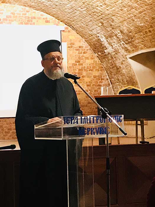Χαιρετισμό στη εκδήλωση απηύθυνε ο Δήμαρχος Κέρκυρας κ. Κώστας Νικολούζος, ο οποίος υπογράμμισε την άριστη συνεργασία που είχε ο Δήμος, τόσο με την Ιερά Μητρόπολη, όσο και με άλλους φορείς του νησιού, σε σειρά εκδηλώσεων το 2016 επί τη συμπληρώσει 300 ετών από την πολιορκία της Κέρκυρας και την θαυματουργική επέμβαση του Αγίου Σπυρίδωνος.