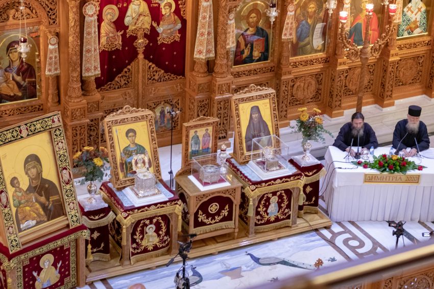 “ Όταν ήμασταν μικροί”, συνέχισε ο ομιλητής, “δεν γνωρίζαμε ποιος μας προστάτευε και μας τάιζε. Ώσπου το καταλάβαμε αφού γίναμε και εμείς γονείς. Το ίδιο συμβαίνει και στα πνευματικά. Ο Κύριος είπε: ‘ Ὁ τρώγων μου τὴν σάρκα καὶ πίνων μου τὸ αἷμα ἐν ἐμοί μένει κἀγώ ἐν αὐτῷ’. Τα θεία λόγια αυτά δεν τα καταλαβαίνουμε γιατί βρισκόμαστε σε μια νηπιακή ηλικία, έως ότου, ακολουθώντας τις συμβουλές της Εκκλησίας, του Θεού της αγάπης, ενηλικιωνόμαστε και έρχεται η ώρα που από τούτη τη ζωή καταλαβαίνουμε και αναγνωρίζουμε ποιος είναι Αυτός που μας προστατεύει, που μας τρέφει και εμείς αυξανόμαστε πνευματικά. Αυτό θα το καταλάβουμε όχι θεωρητικά, εγκεφαλικά, αλλά ζώντας ο ένας δίπλα στον άλλον. Αλλ’ αυτό θα το πετύχουμε στο χώρο που μας τοποθέτησε ο Θεός. Στον τόπο και στο χρόνο που μας χάρισε. Γι’ αυτό είμαστε υποχρεωμένοι να υπερασπιστούμε τη γήινη πατρίδα. Είναι ο χώρος που θ’ αγωνιστούμε για να κερδίσουμε και για να γίνουμε άξιοι και για τη δεύτερη πατρίδα, τη Βασιλεία των Ουρανών”.