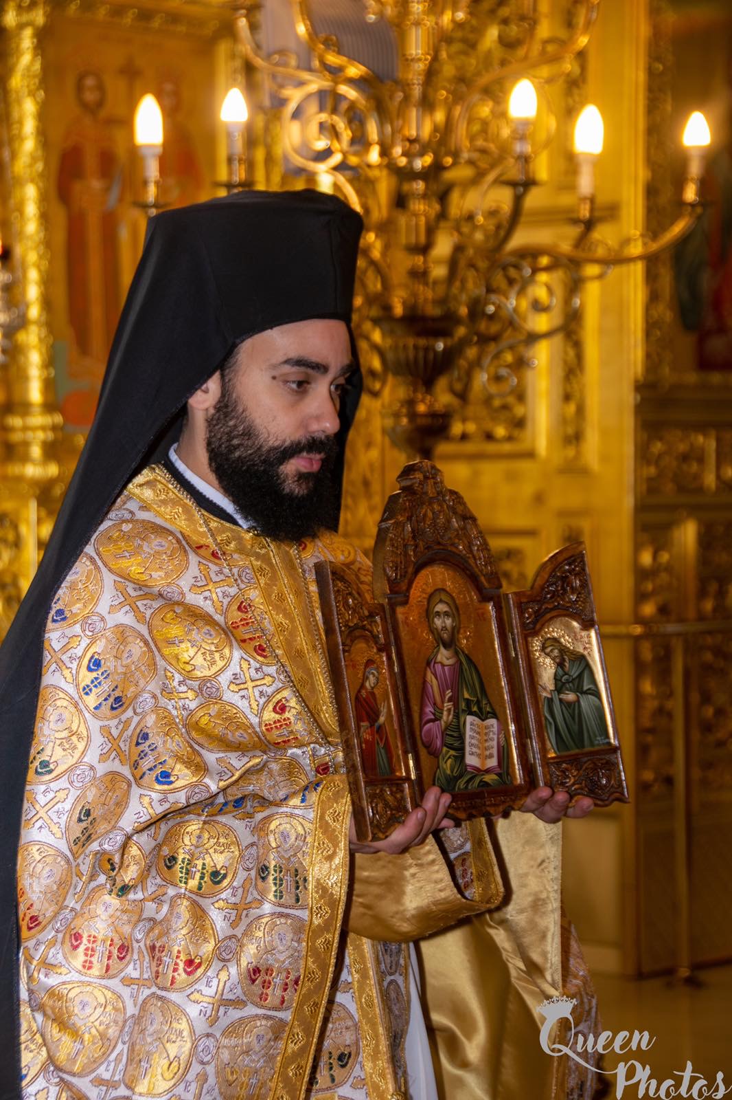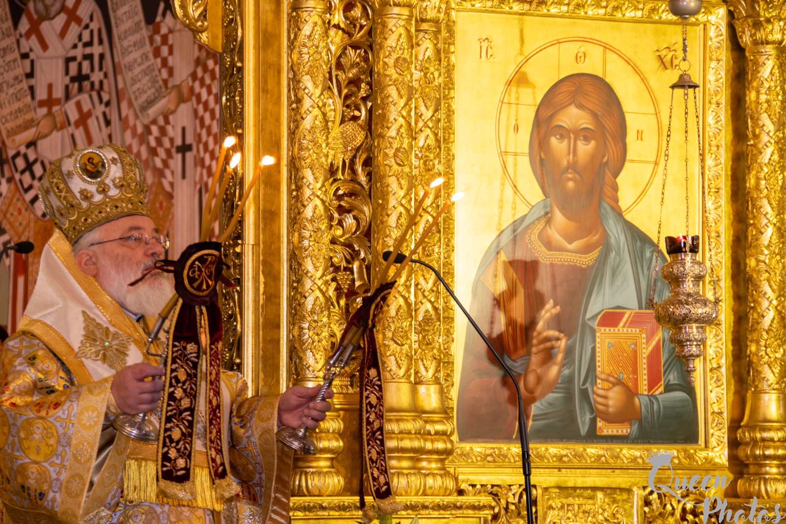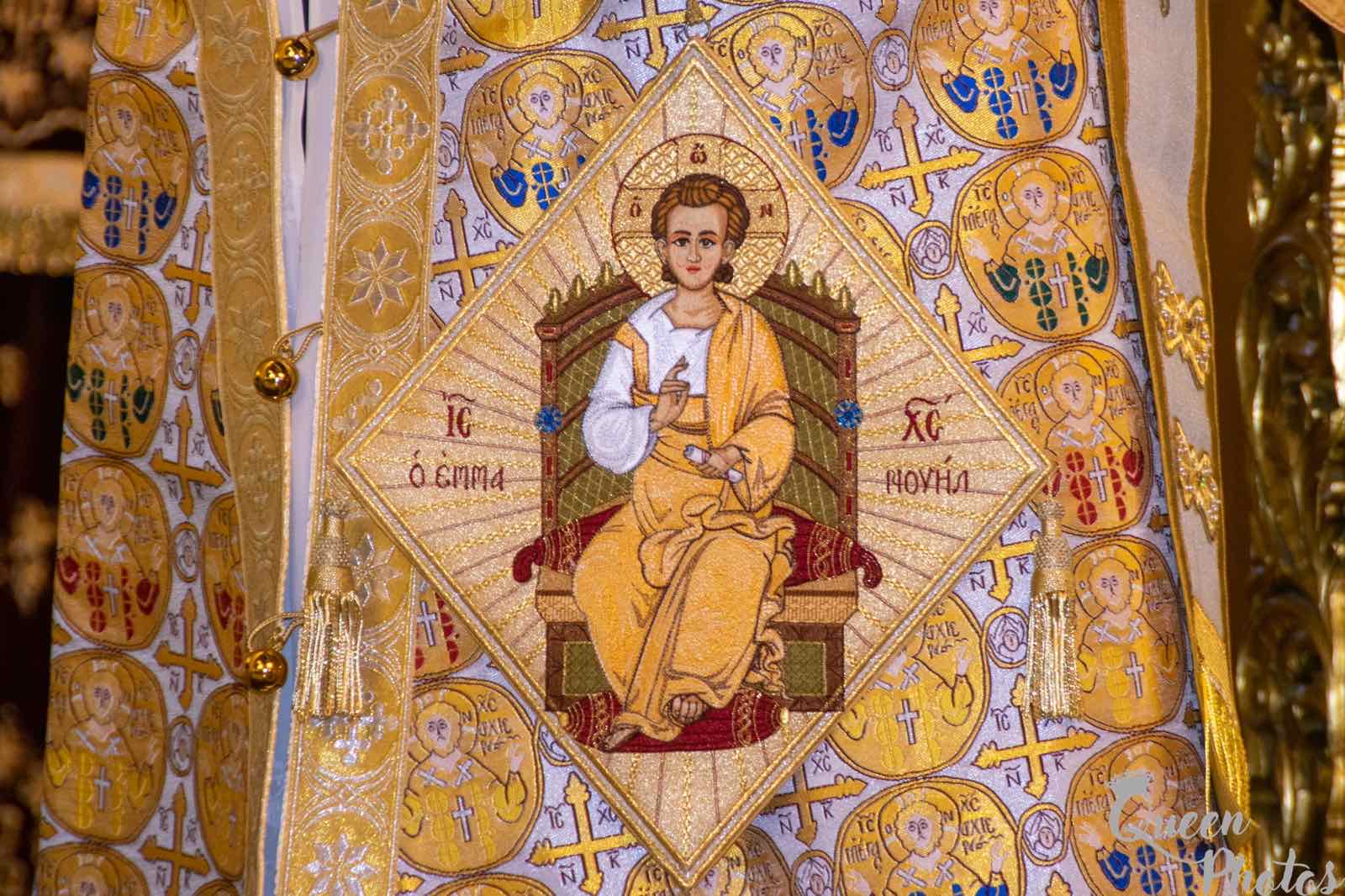 »Αλλά αν η χαρά και η ανέκφραστη αγαλλίαση εκφράζονται από τον πρεσβύτη Συμεών, η Υπεραγία Θεοτόκος βιώνει τον πόνο και την θλίψη. Θλίψη από τα προφητικά λόγια του αγίου Συμεών «και σου την καρδίαν διελεύσεται ρομφαία». Η Παναγία στρατεύεται στον δρόμο του Σταυρού, που είναι το δώρο του Υιού της σ’ ολόκληρο τον κόσμο. Το δώρο αυτό που χαρίζεται και στην ίδια, με μια διπλή επίπτωση. Της χαράς για την σωτηρία και την λύτρωση από τη μια, της θλίψεως της μητρικής καρδιάς της, από την άλλη, μπροστά στην άρνηση αποδοχής από τον κόσμο του Υιού και Θεού της. Άρνηση που θα φθάσει μέχρι τον σταυρικό θάνατο… Το λυτρωτικό αυτό μήνυμα που αφορά όλο τον κόσμο, υποδηλώνεται από τα δύο περιστέρια, τα οποία προσφέρει ο Ιωσήφ στον Ναό. Δεν ανταποκρίνονται μόνο στην καθορισμένη προσφορά, αλλά συμβολίζουν την θλίψη και την χαρά, τον Σταυρό και την Ανάσταση».