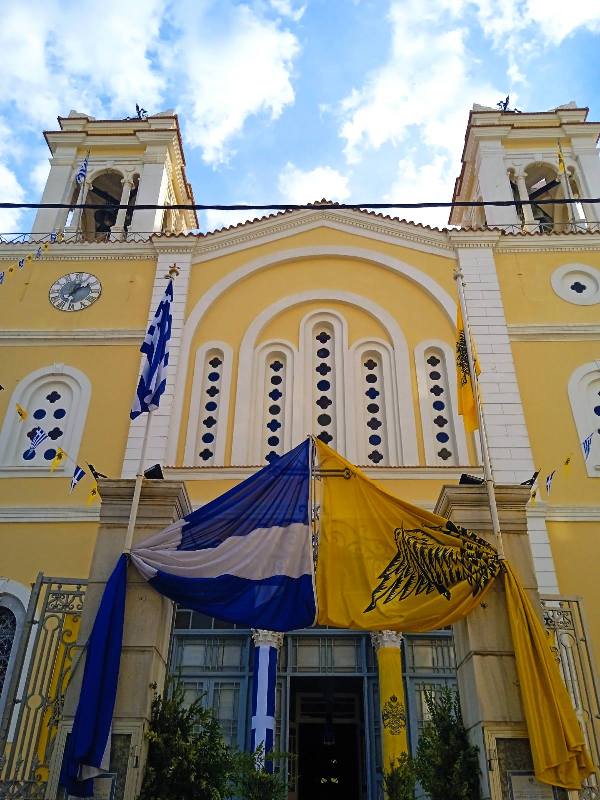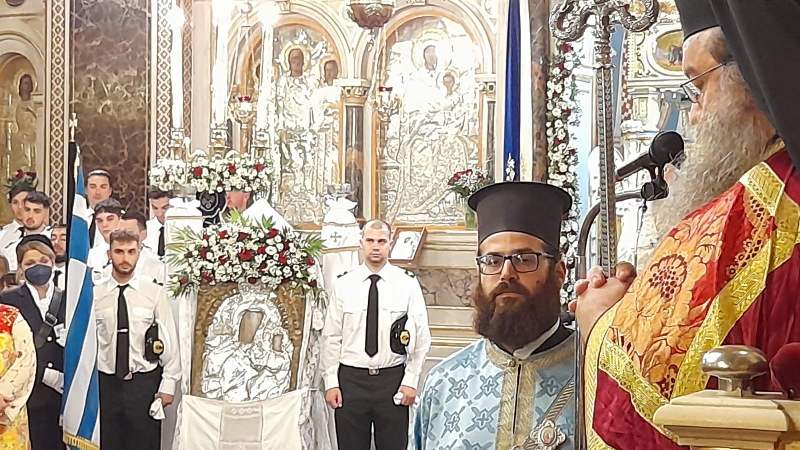 Ἐξ αὐτῆς τῆς ἡμέρας πᾶσα ἡ χριστοφόρος νῆσος ἡμῶν ἡγιάσθη, διά τῶν ἱερῶν μορφῶν τοῦ ἐν Ἁγίοις Πατρός ἡμῶν Νεκταρίου, ἐπισκόπου Πενταπόλεως, καί τοῦ Ὁσίου Πατρός ἡμῶν Ἀνθίμου τοῦ Χίου, ἐδοξάσθη διά γενναίων καί κραταιῶν ἀξιωματικῶν, ἐφωτίσθη διά ἐμβριθῶν μελετητῶν καί ἐρευνητῶν τῆς ἐπιστήμης καί τῶν γραμμάτων, ἐτιμήθη δι’ ἐξόχων πολιτικῶν, ἐκοσμήθη διά φιλοκάλων ἐκφραστῶν τοῦ πολιτισμοῦ καί τῶν τεχνῶν, προώδευσεν διά φιλοπόνων ἀνθρώπων τῆς ἐργασίας καί τοῦ ἐμπορίου, ἐξαιρέτως δέ ἐλαμπρύνθη καί ἐπρώτευσεν διά τῶν ἀνδρῶν τῆς πρυτανευούσης ἀνά τήν οἰκουμένην Ἑλληνικῆς Ἐμπορικῆς Ναυτιλίας.