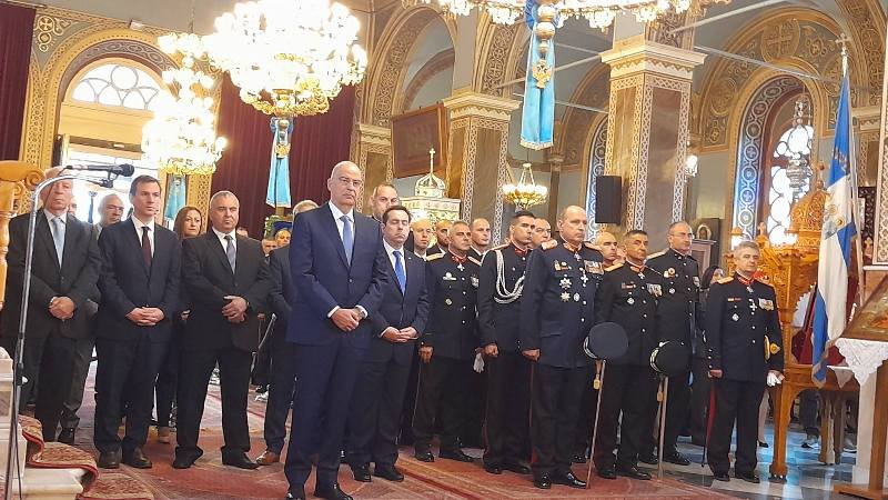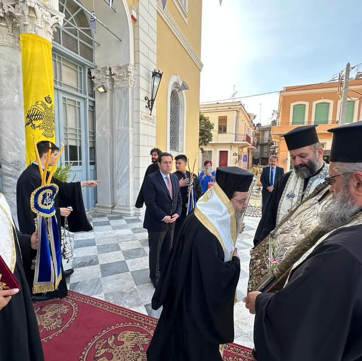 Ἀκολούθως, ὁ Σεβ. Μητροπολίτης Χίου κ. Μᾶρκος ἐτέλεσε "Τρισάγιον" στό ἡρῷο τῆς πόλεως καί στή συνέχεια παρακολούθησε τή μαθητική καί στρατιωτική παρέλαση μέ τούς λοιπούς ἐπισήμους καί πλήθους κόσμου.