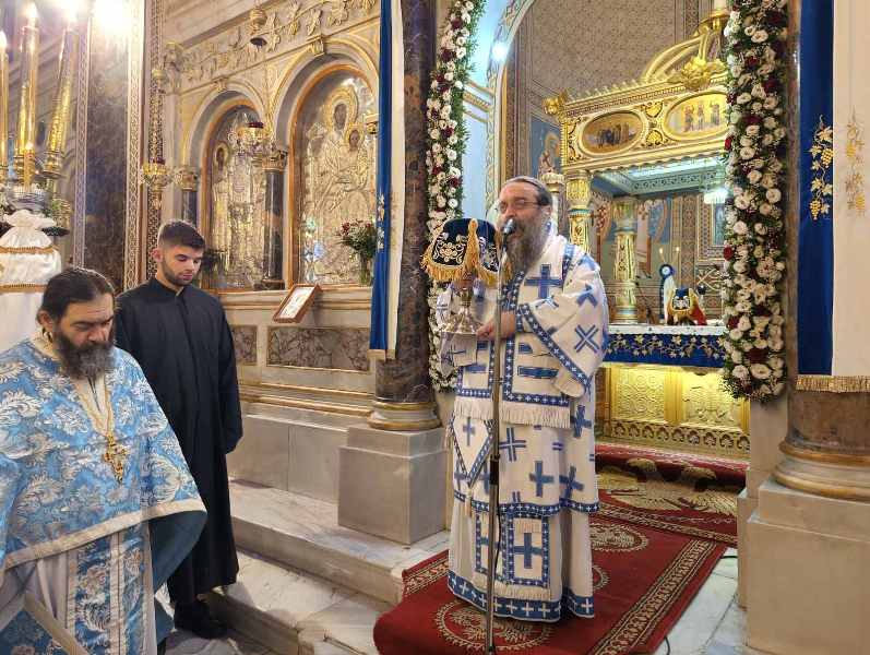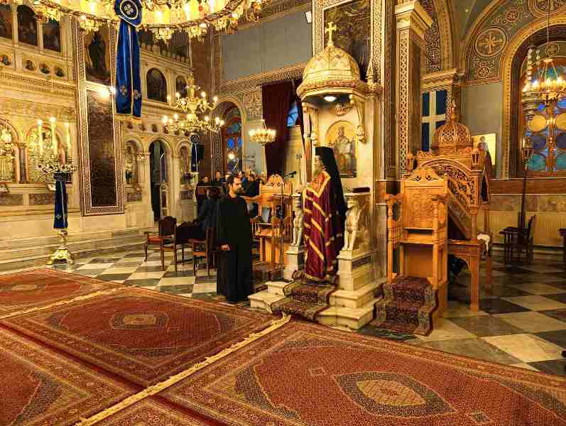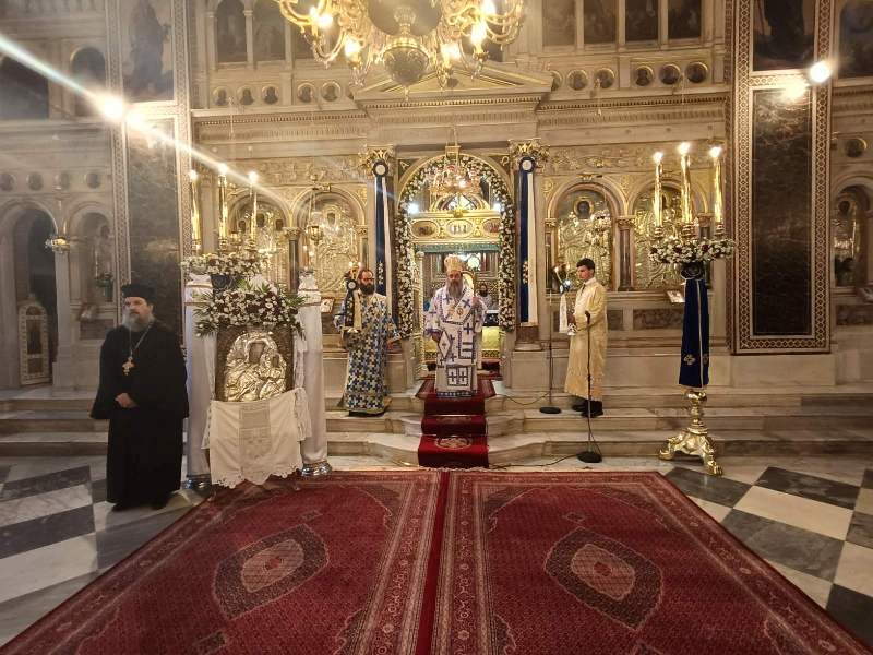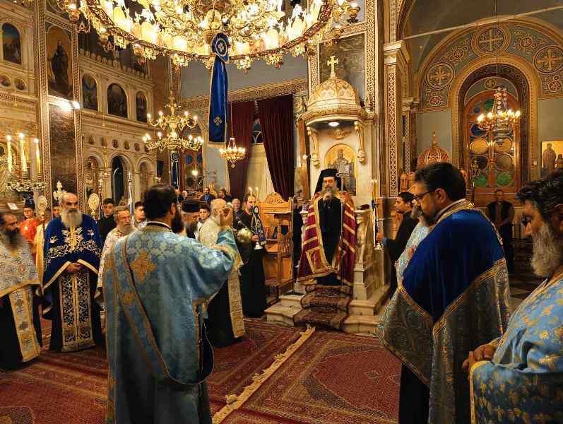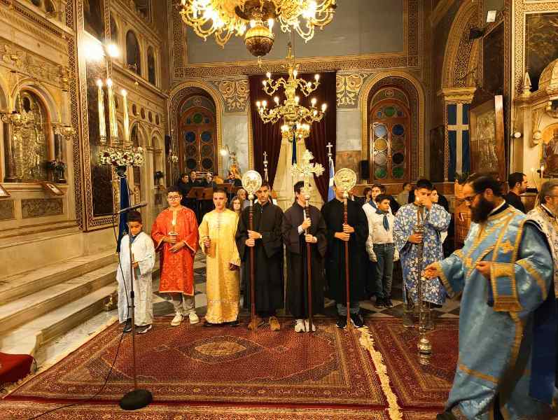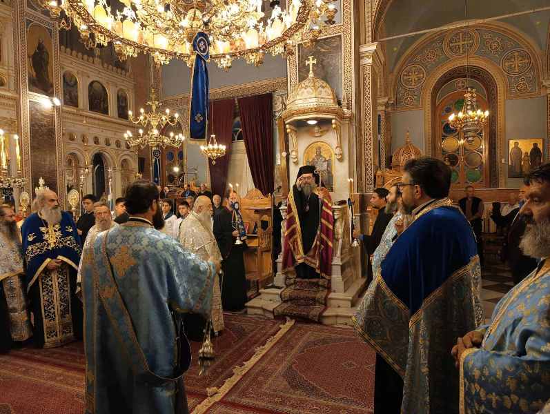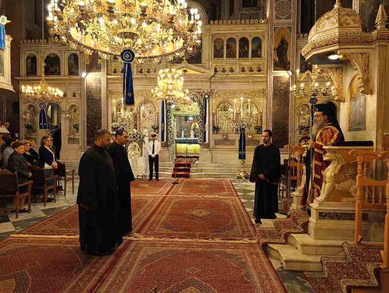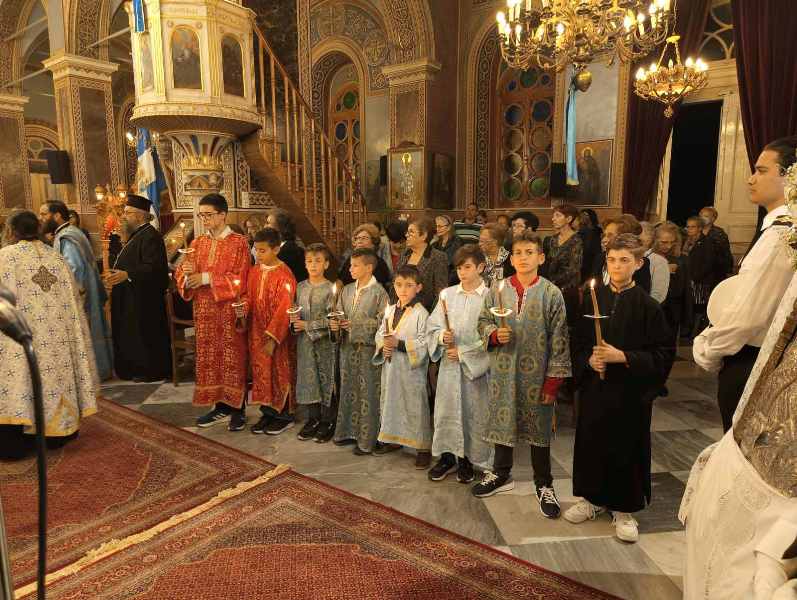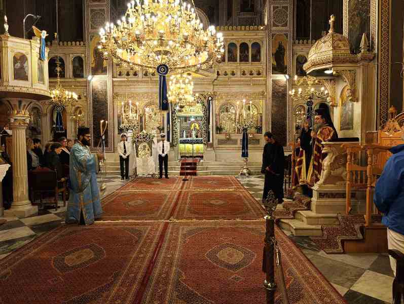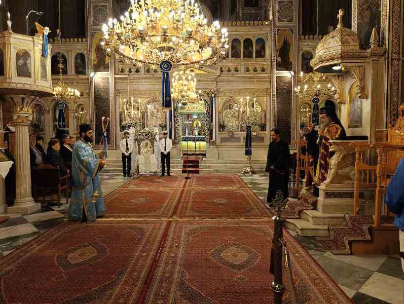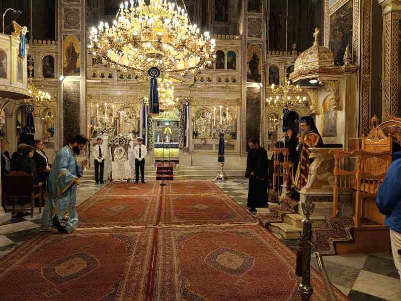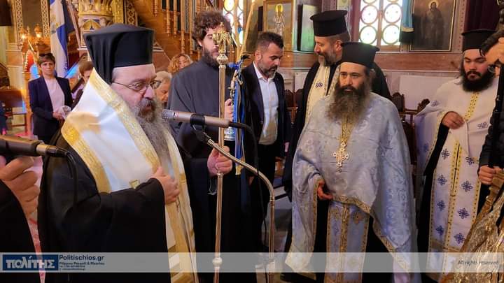 Κατά τόν Ἀρχιερατικό Μέγα Ἑσπερινό ἐχοροστάτησε ὁ Σεβασμιώτατος Μητροπολίτης Χίου κ. Μᾶρκος, πλαισιούμενος ὑπό τοῦ συνόλου σχεδόν τῶν Ἱερέων τῆς Ἱερᾶς Μητροπόλεως, καί τοῦ Ἀρχιδιακόνου καί μέ τήν συμμετοχή τῶν Ἀρχῶν, πλήθους πιστῶν, κυρίως νέων, μαθητῶν τῶν Σχολείων, τῶν σπουδαστῶν τῶν Α.Ε.Ν., τῶν πολιτιστικῶν Σωματείων, οἱ ὁποῖοι, ἀπό πολύ νωρίς, εἶχαν κατακλύσει τόν Ἱ. Μητροπολιτικό Ναό.