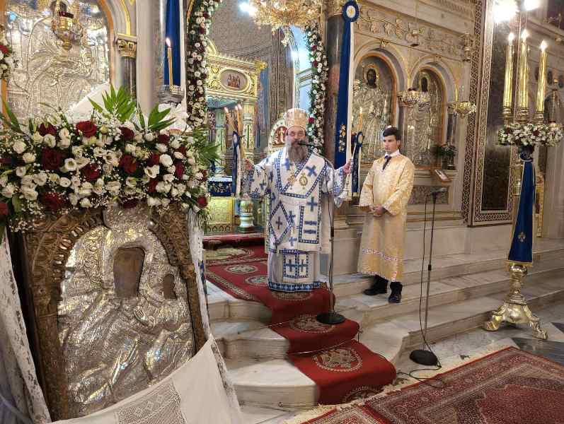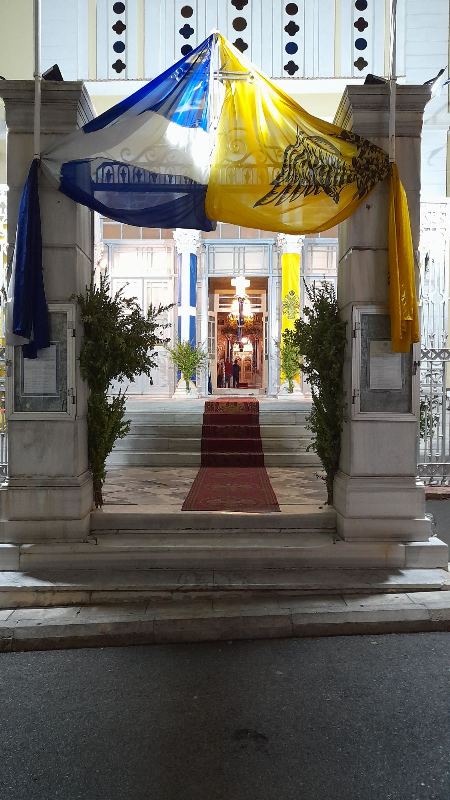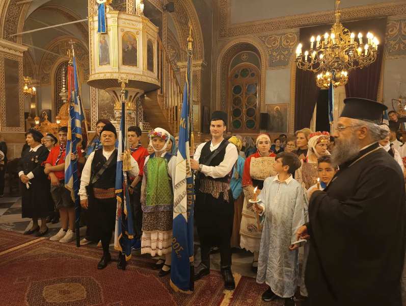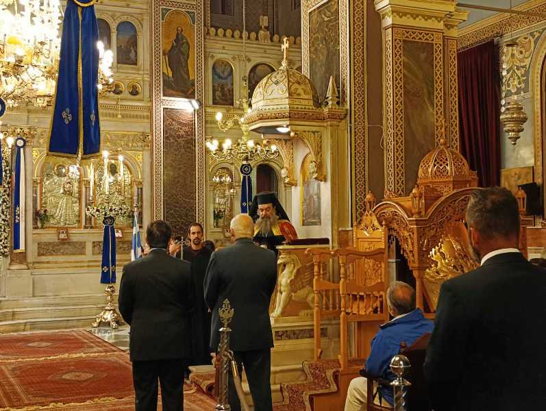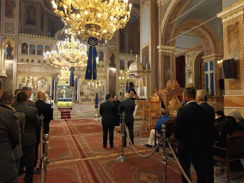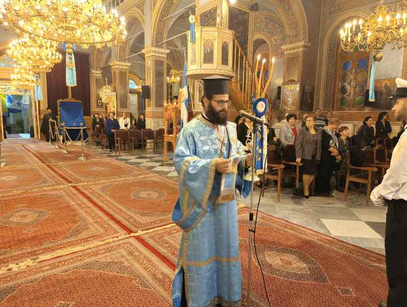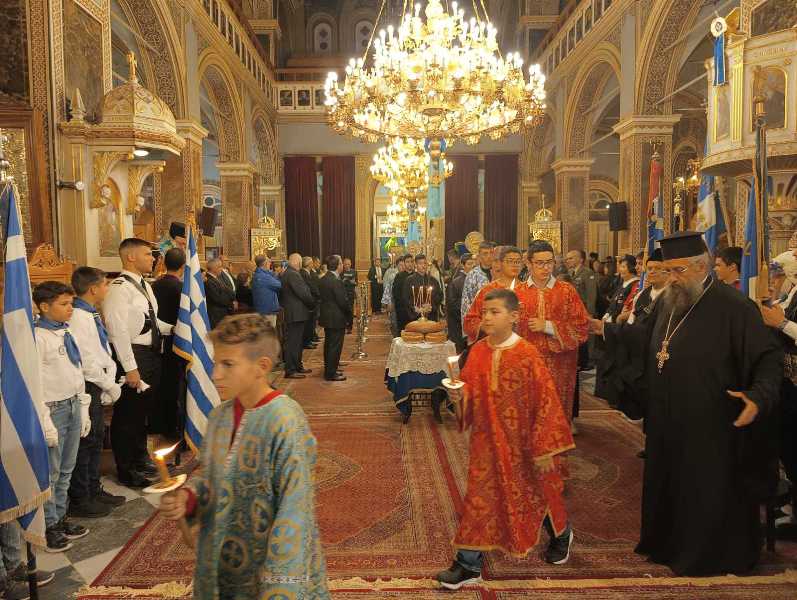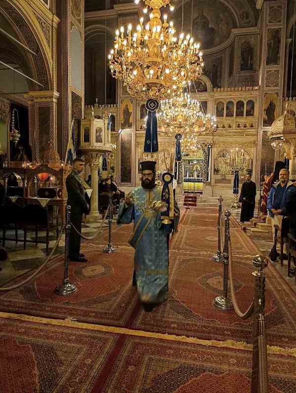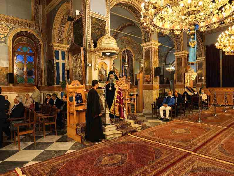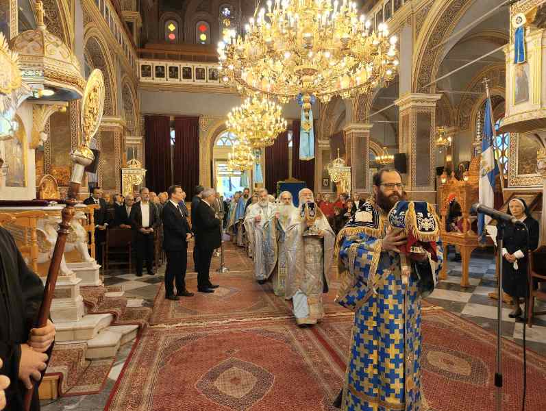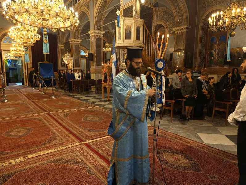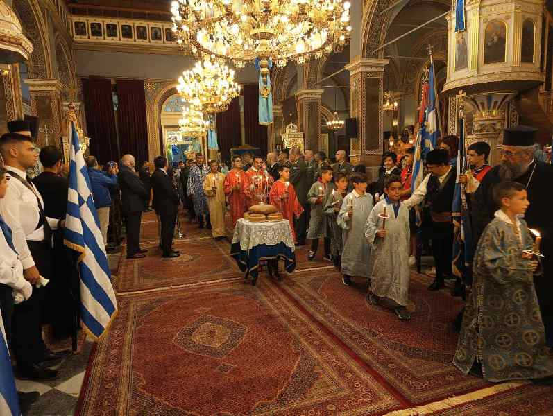 Εἰς τό πέρας τῆς Θ. Λειτουργίας ἐτελέσθη, μέ ἔντονα συναισθήματα ἐθνικῆς συγκινήσεως, ἡ Ἐπίσημη Δοξολογία ἐπί τῇ ἀπελευθερώσει τῆς πόλεως ἀπό τούς Τούρκους κατά τήν ὁποίαν ὁ Σεβασμιώτατος ἀνέπεμψεν τήν ὑπ’ αὐτοῦ συνταχθεῖσα σχετική Εὐχή: