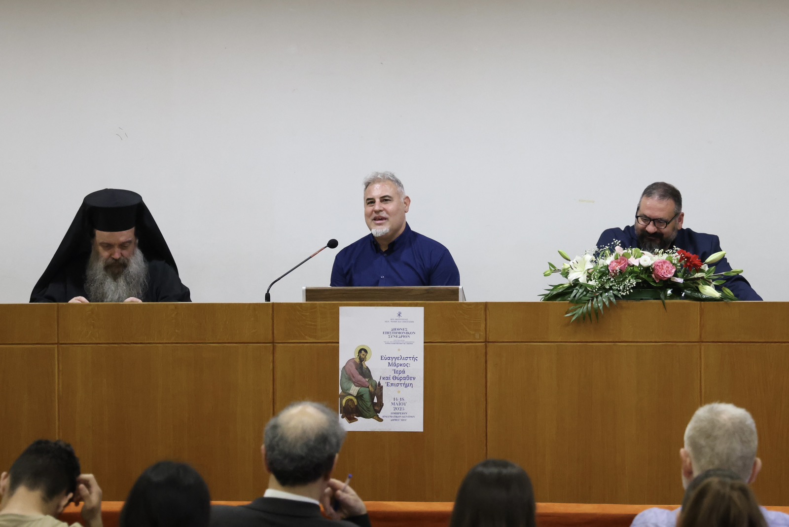 Μετά πολλῆς χαρᾶς ἀπευθύνομεν ἐγκάρδιον ἀναστάσιμον χαιρετισμόν πρός τούς συμμετέχοντας είς τό Διεθνές Ἐπιστημονικόν Συνέδριον τῆς καθ’ ὑμᾶς Ἱερᾶς Μητροπόλεως ὑπό τόν τίτλον «Εὐαγγελιστής Μᾶρκος: Ἱερά καί Θύραθεν Ἐπιστήμη», συγχαίροντες ὑμῖν διά τήν προσπάθειαν καί τήν μέριμναν ὑπέρ τῆς προωθήσεως τῆς θεολογικῆς γνώσεως καί τῆς προβολῆς τοῦ πλούτου καί τῆς μαρτυρίας τῆς παραδόσεως τῆς καθ’ ἡμᾶς Ὀρθοδόξου Ἐκκλησίας καί Θεολογίας.