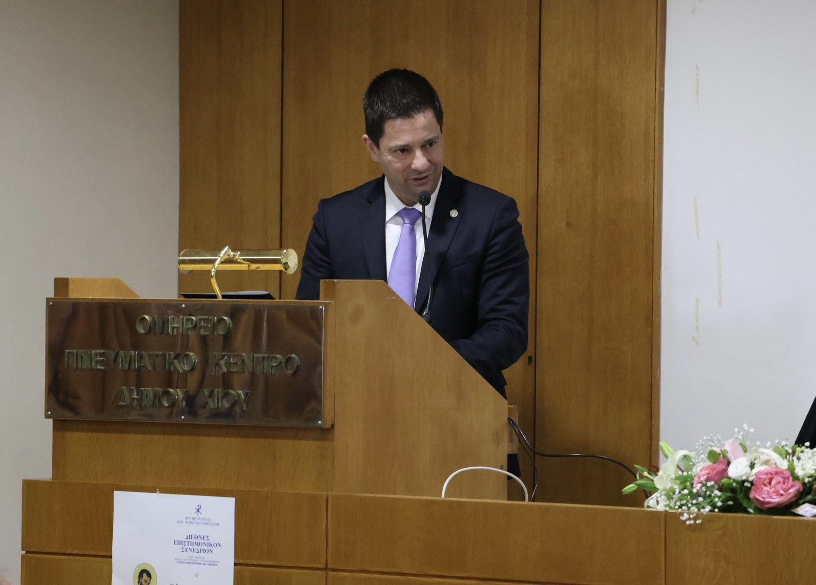 Περαίνοντες τό μετά χεῖρας Μήνυμα, συγχαίρουμε ἐκ νέου τόν Σεβασμιώτατο Μητροπολίτη Χίου, Ψαρῶν καί Οἰνουσσῶν κ. Μᾶρκο καί εὐχόμεθα πρός πάντας ἐπωφελῆ καί καρποβριθῆ τήν συμμετοχή στό Συνέδριο, ἔκβαση αἰσία καί κάθε ἀγαθοδωρία ἐκ τοῦ Πατρός τῶν φώτων.»