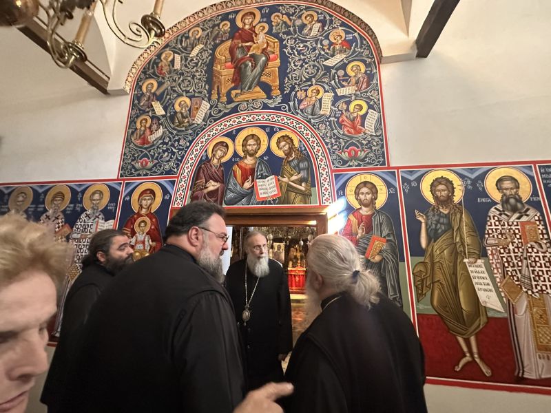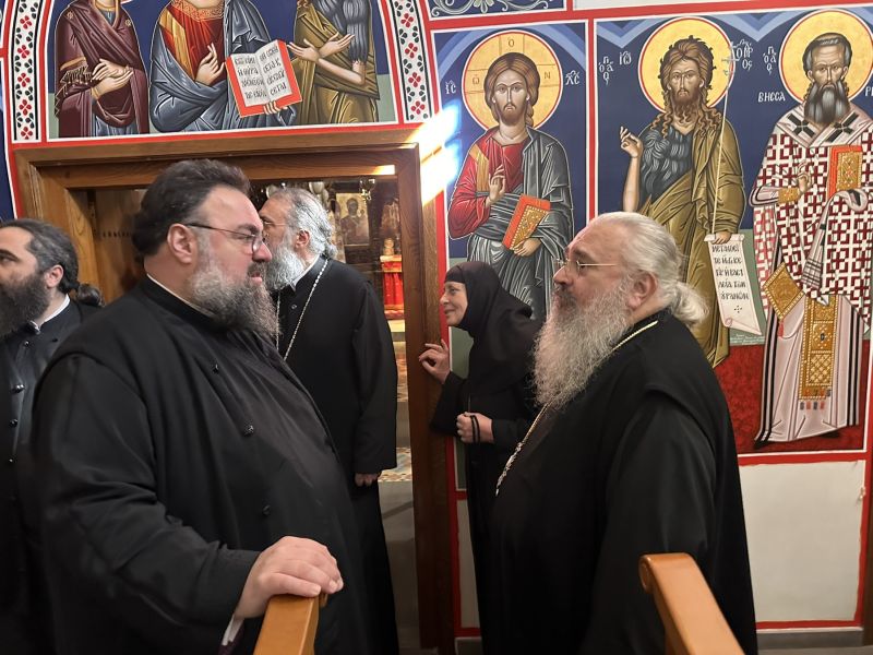 Ο Σεβασμιώτατος κ. Χρυσόστομος καλωσόρισε επίσης τον αγαπημένο του αδελφό π. Νικόλαο Κλάδη, Προϊστάμενο του Ιερού Ναού Αγίου Νικολάου Καλλιθέας Αθηνών, μαζί με τον διάκονο Ιωάννη, καθώς και τον π. Μακάριο Τσιμέρη από τη Μητρόπολη Θεσσαλονίκης.