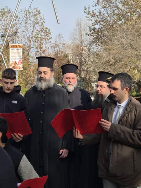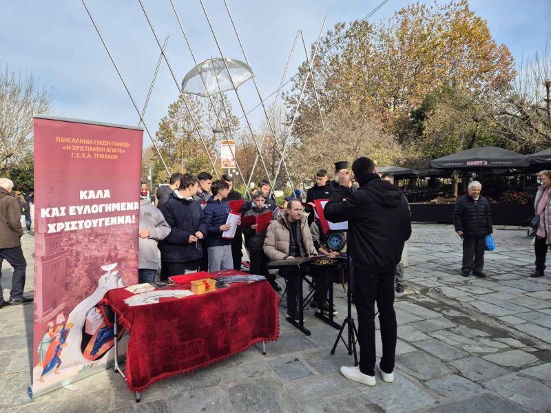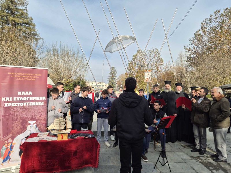 Στη συνέχεια μετέβησαν στην κεντρική πλατεία των Τρικάλων, όπου έψαλαν τα κάλαντα στους διερχόμενους πολίτες και προσέφεραν γλυκίσματα και εικονάκια, μοιράζοντας χαρά και χριστουγεννιάτικη ευλογία.