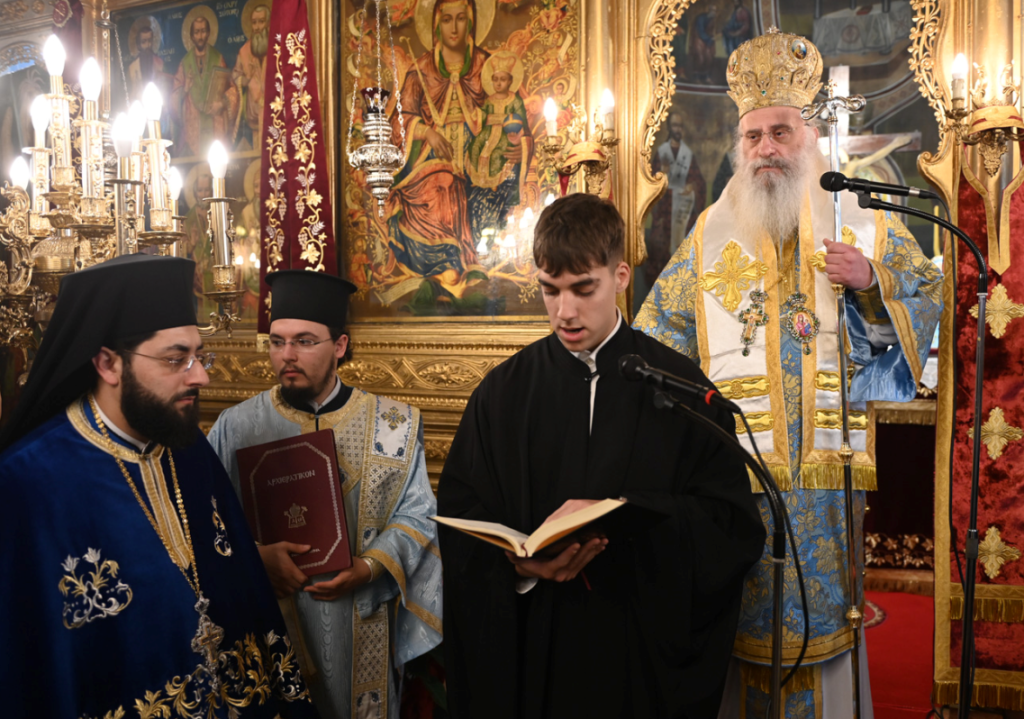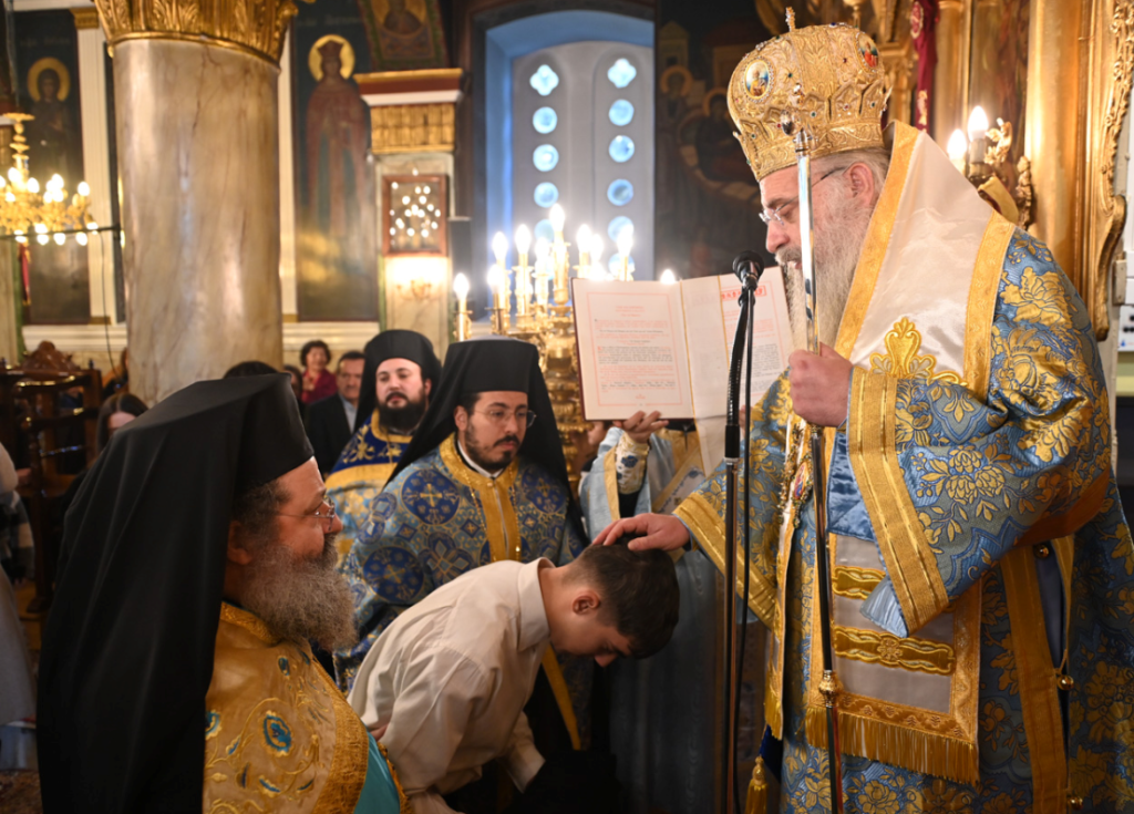 Προ της απολύσεως ο Μητροπολίτης κ. Επιφάνιος χειροθέτησε σε Αναγνώστες, δύο μαθητές της Γ΄Λυκείου από το Λεβίδι, τον Ιωάννη Καμπέλο και τον Σιέμπο Νικόλαο, οι οποίοι με ζήλο διακονούν την ενορία και είναι μαθητές του Παραρτήματος της Σχολής Βυζαντινής Μουσικής της Μητροπόλεως.